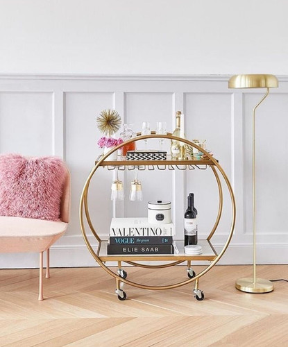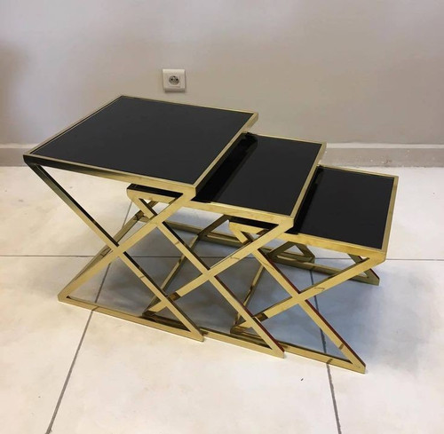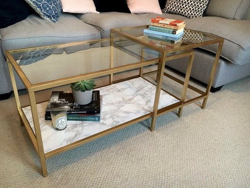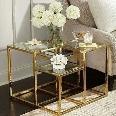 میز کافی بار طلایی با رویه شیشه