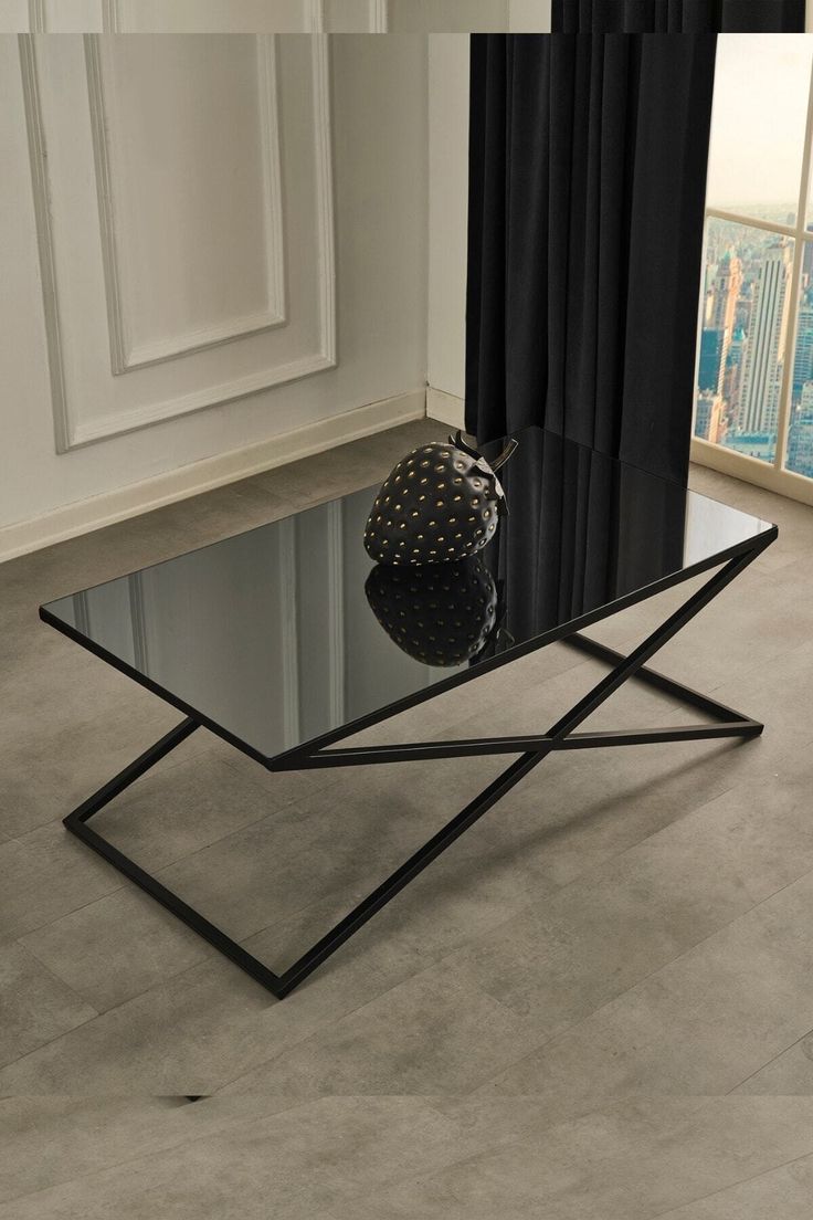 میزجلومبلی مربعی شکل با رویه شیشه