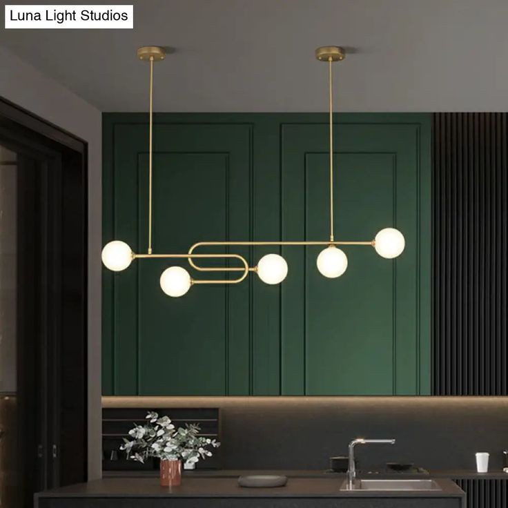 این لوستر با طراحی مینیمال و ساختار هندسی منحصربهفرد، انتخابی ایدهآل برای آشپزخانههای مدرن و لوکس است. ترکیب فلز طلایی با حبابهای شیشهای مات، جلوهای گرم و شیک به فضا میبخشد و نورپردازی یکنواخت و دلنشینی ایجاد میکند. مناسب برای جزیره آشپزخانه یا میز ناهارخوری، با کیفیت ساخت بالا و طراحی چشمنواز