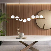 رنگ طلایی مات بدنه، در کنار نور ملایم و دلنشین حبابها، فضایی گرم، صمیمی و بسیار شیک میسازد که نگاه هر بینندهای را جذب میکند. این لوستر، انتخابی بینقص برای بالای میز ناهارخوری، جزیره آشپزخانه یا سالن پذیرایی است و به فضای شما شخصیت و جلوهای منحصربهفرد میبخشد.